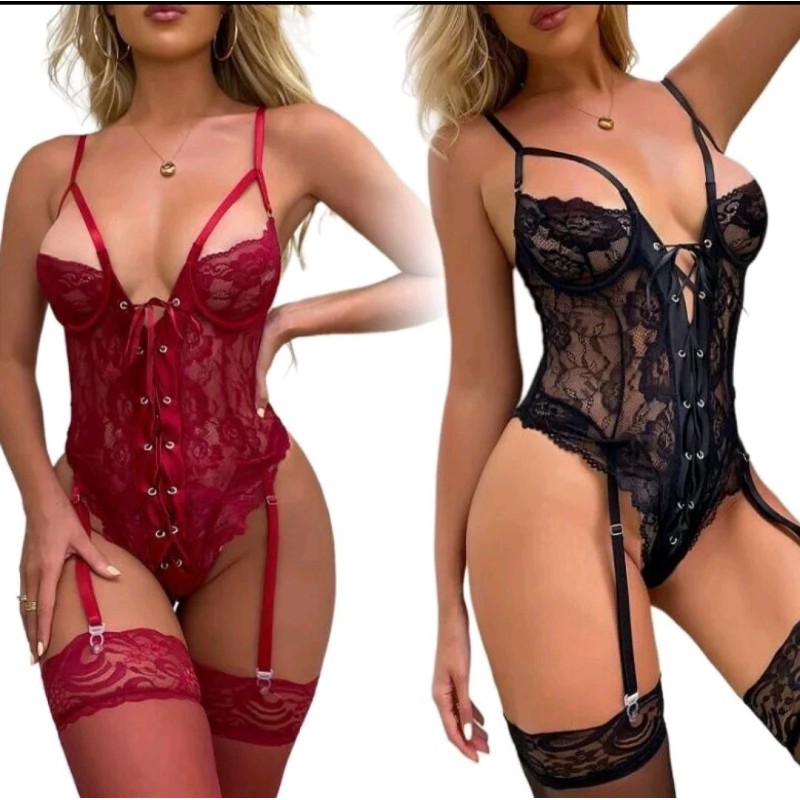 New European and American sexy lingerie, sexy sleepwear with lace embellishments, one-piece sheer sleepwear.