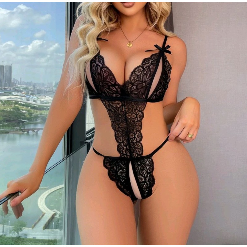 European and American Style Gathered Sexy Lingerie Sleepwear Hollow Out Backless Bodysuit Adult Sexy Temptation Uniform Set